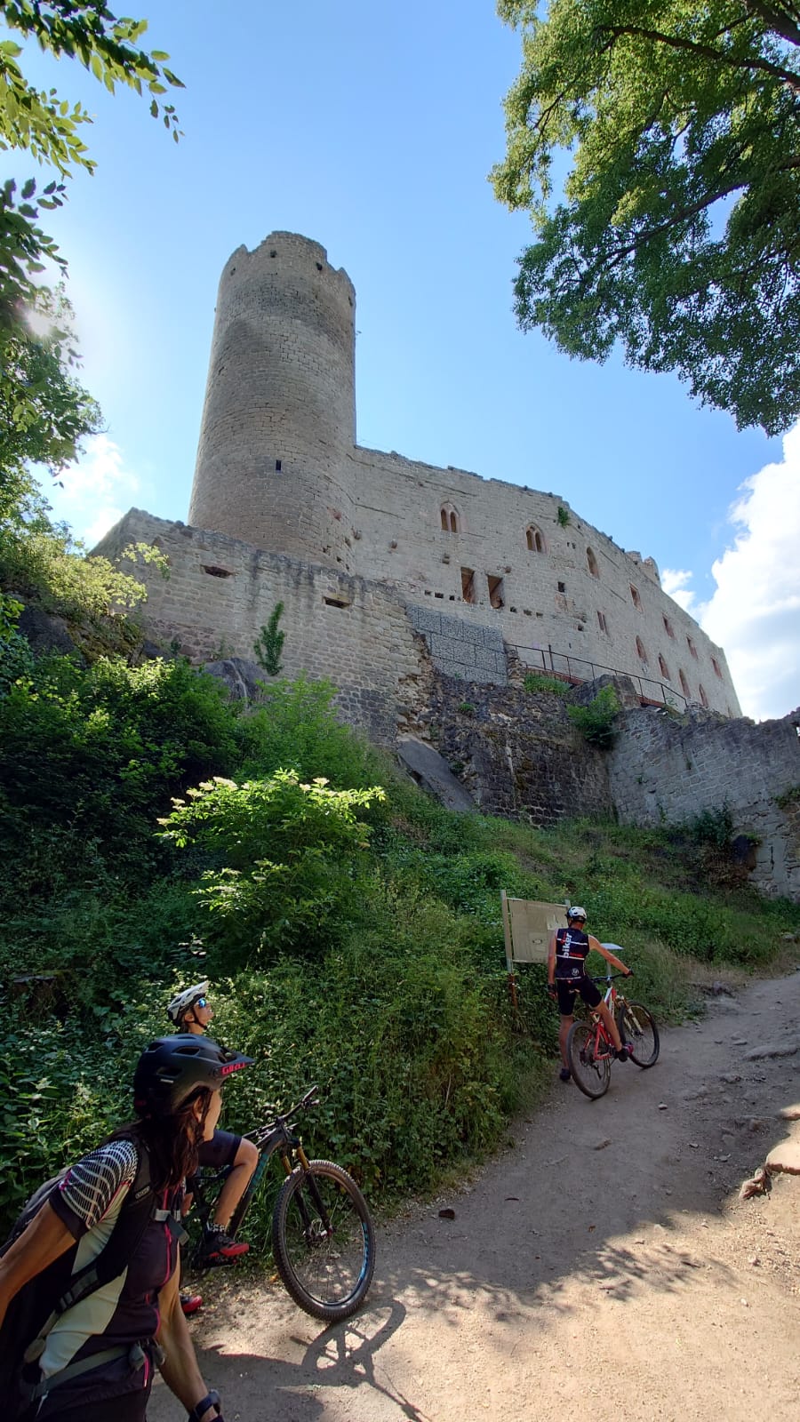 Mit bereits etwas müden Beinen und in der Nachmittagshitze kämpften wir uns von Reichsfeld hoch um anschliessend auf einem langen Trail hinunter nach Andlau zu rollen. Beim gemeinsamen Abendessen auf der Terrasse des Hotels Le Kastelberg und in lustiger Runde konnten wir unsere Energiespeicher wieder ordentlich füllen. Bon Appétit!